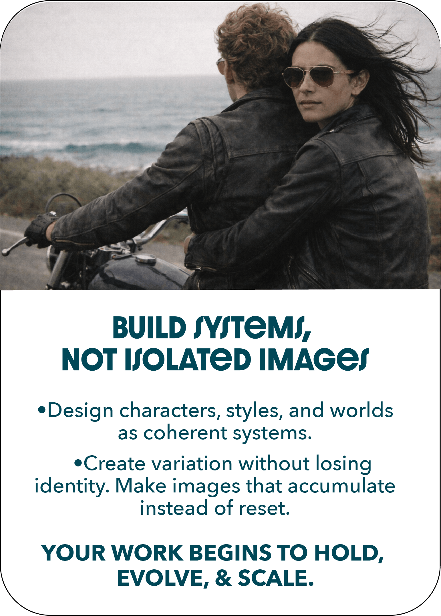 The goal is not to teach you how to generate images — it is to give you a framework that allows your taste to translate into consistent, professional results.